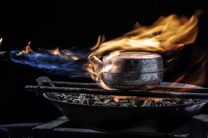 先用秤稱出所用銀料重量,將大塊銀料砸碎放入坩堝置于爐上熔化。當鼓風爐呈白熱化程度時,銀開始熔化,用長柄鉗夾坩堝澆鑄銅模。